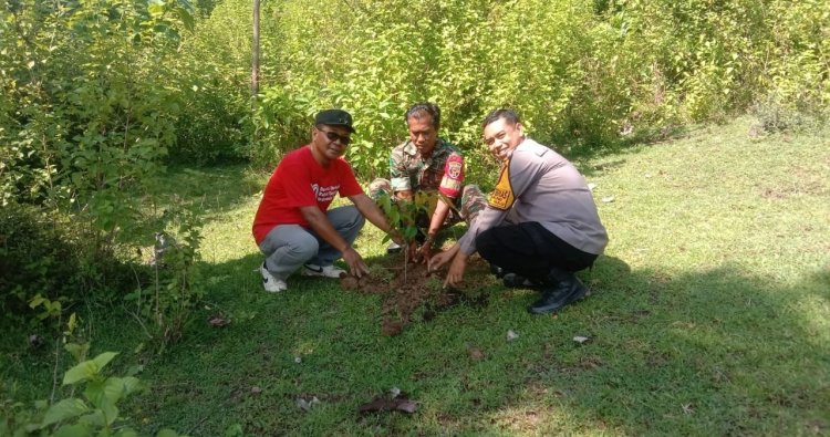 Peringati Hari Penanaman Pohon, Bhabinkamtibmas dan Elemen Desa Semamung Hijaukan Bale Kawa